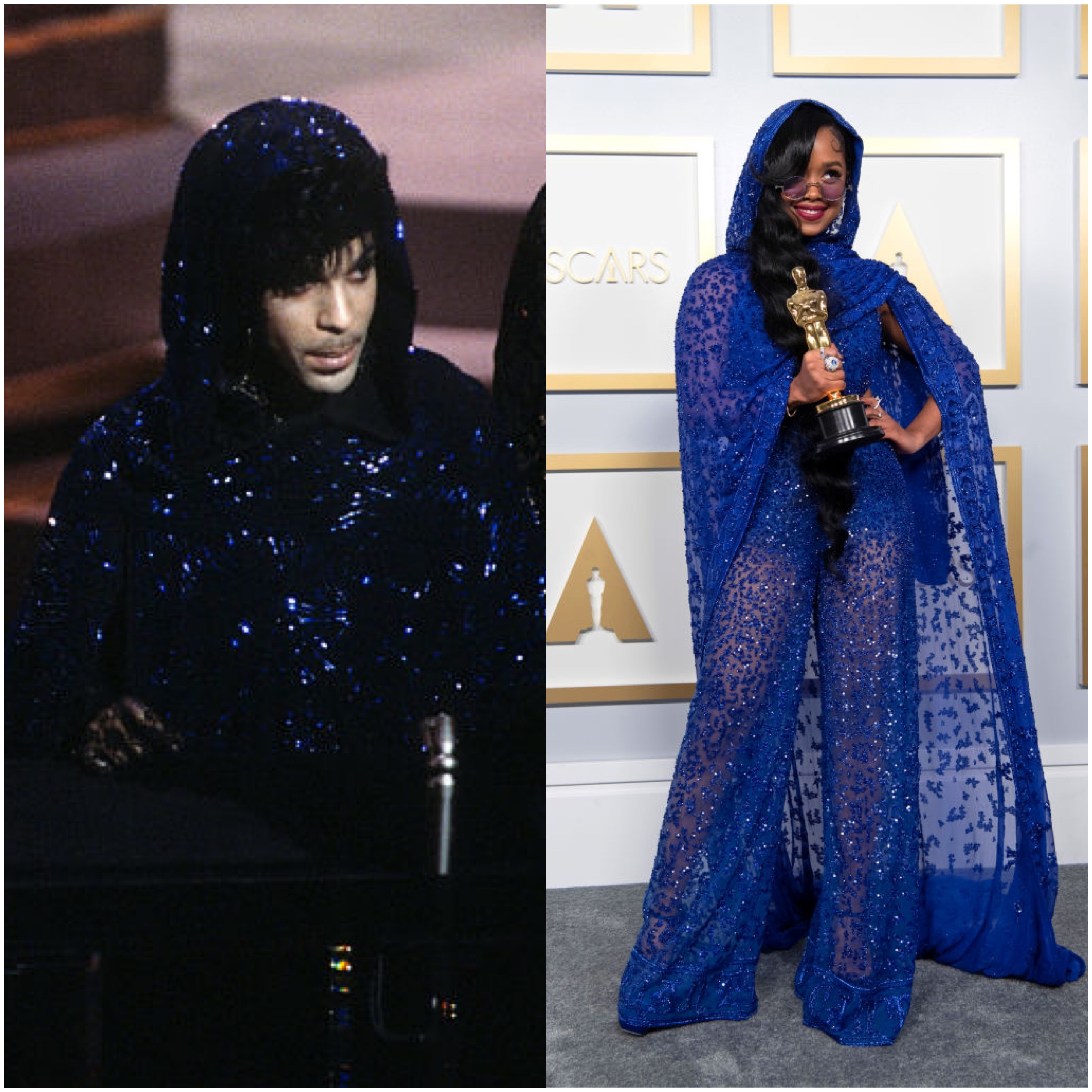 Looks like H.E.R. set her intentions when she wore a Peter Dundas ensemble to the 2021 Academy Awards. The near-EGOT recipient paid homage to Prince by wearing a custom piece that resembled the outfit he wore to the Oscars in 1985.
